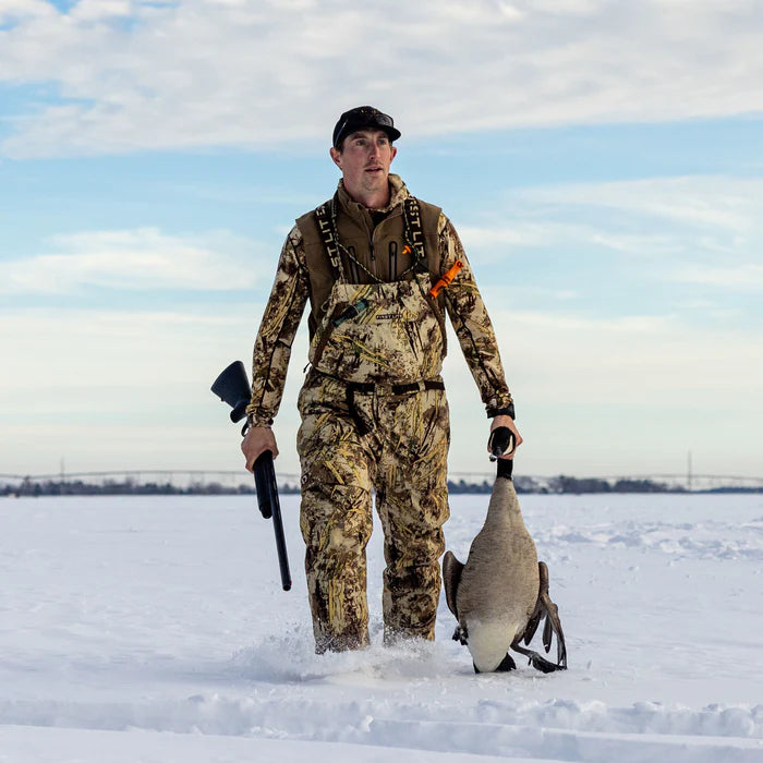 The Refuge Bib was built for performance in the extreme cold of late-season field hunting with its robust insulation package, durable waterproof/windproof fabrication, and an extensive feature set optimized for pit and layout blinds.